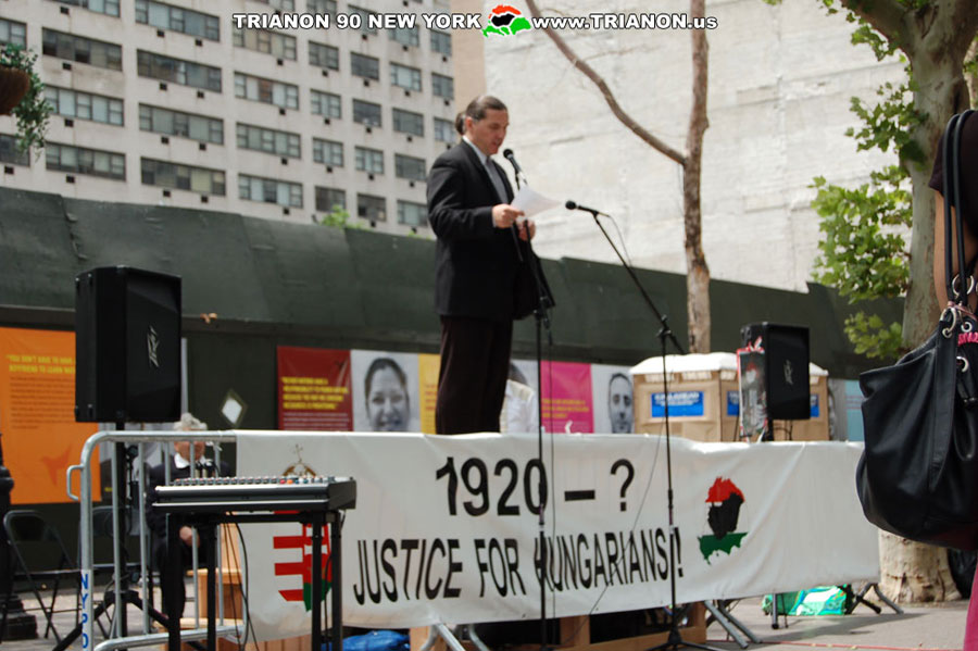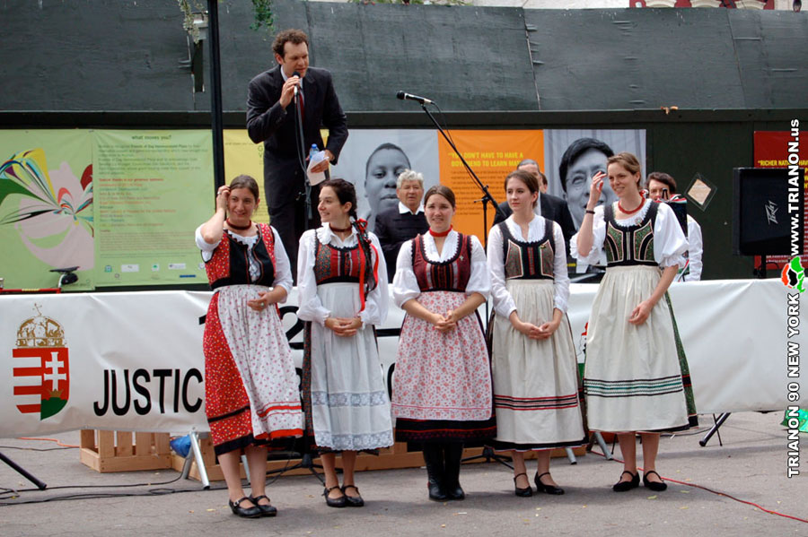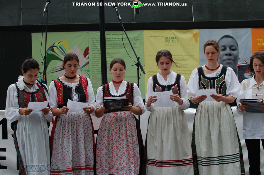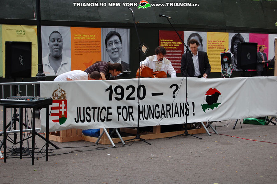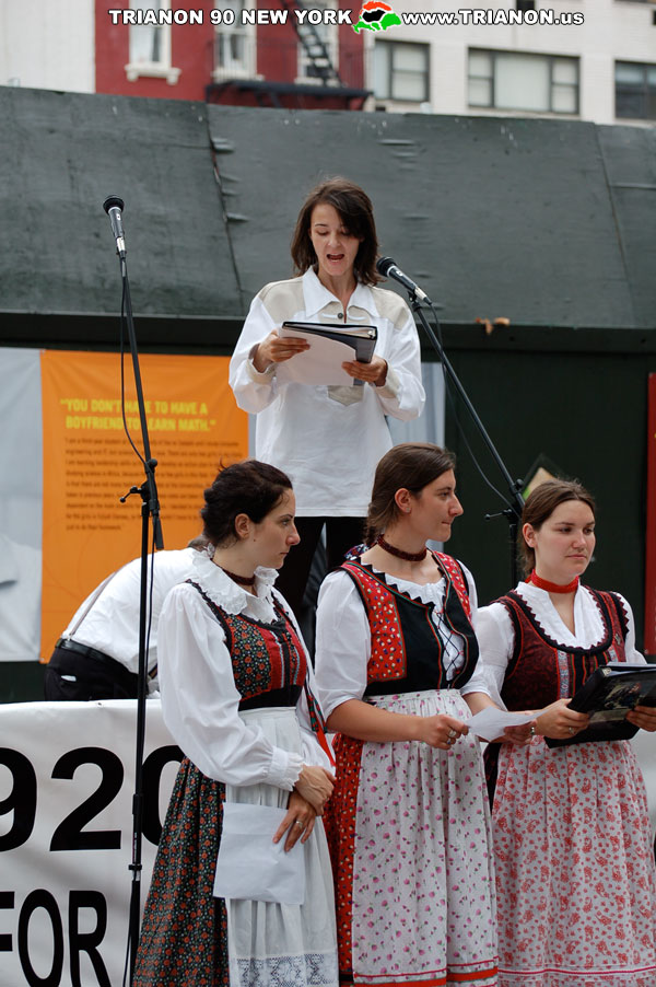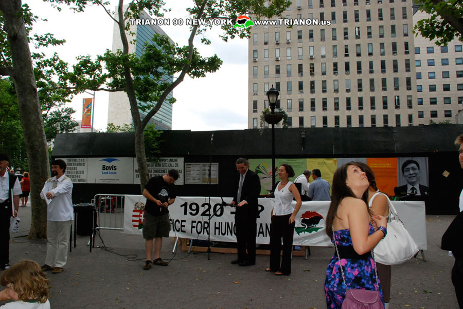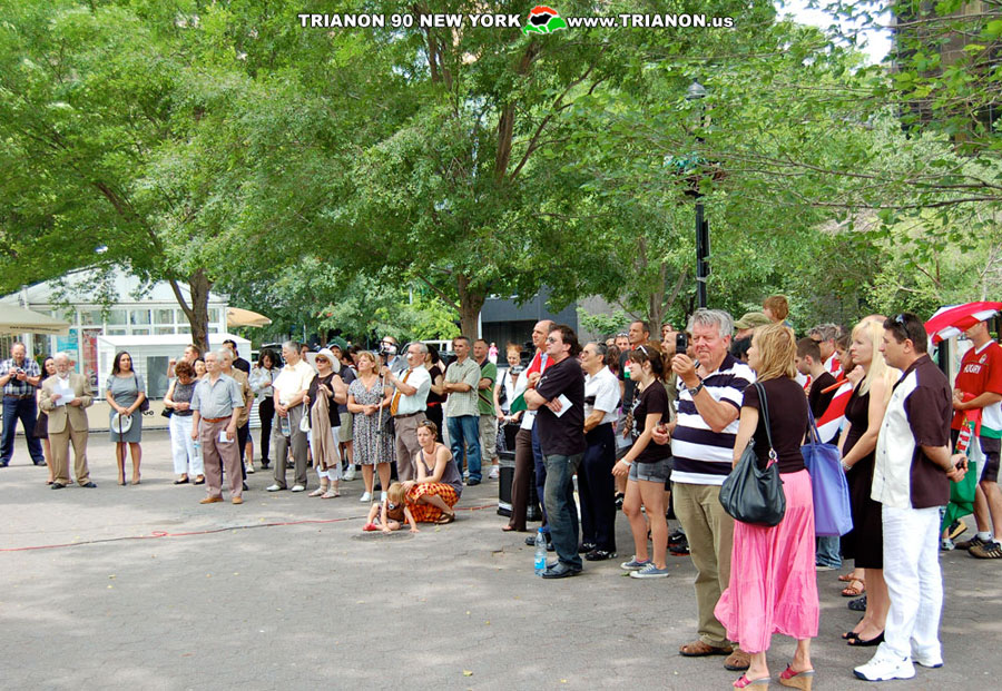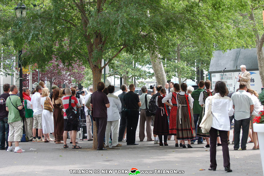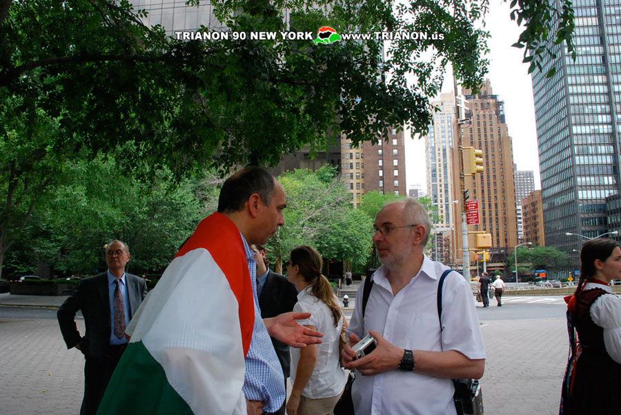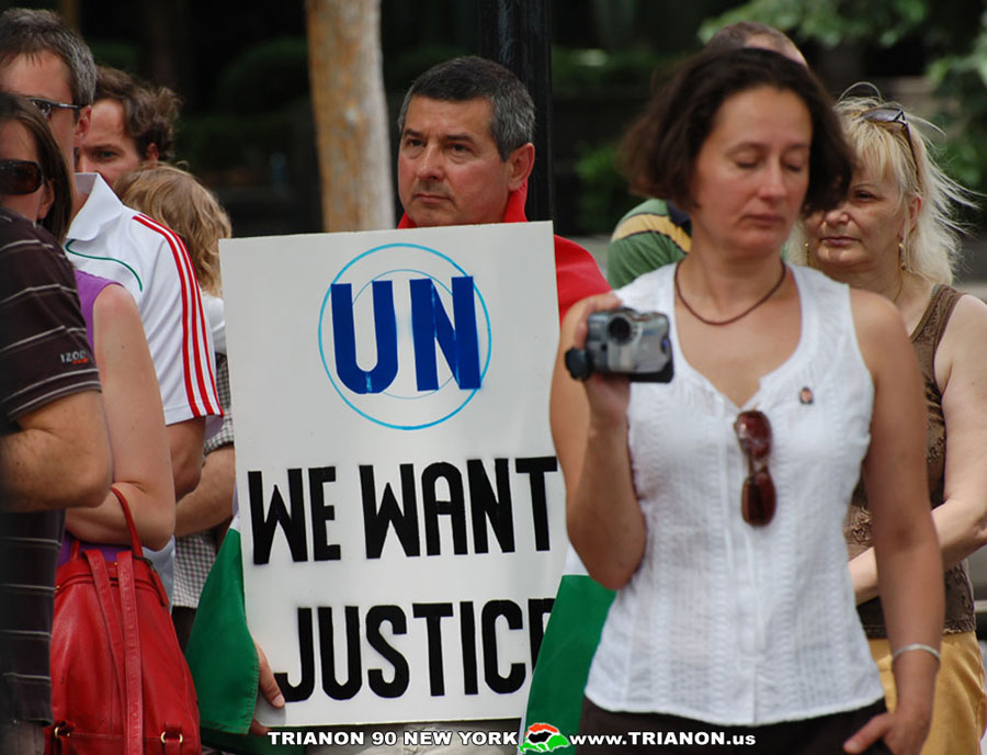 A NEW YORK-I MAGYAROK MEGEMLÉKEZÉSE A TRIANONI DIKTÁTUM 90-IK ÉVFORDULÓJÁN AZ ENSZ PALOTA ELŐTT, MANHATTANBEN./2010. június 6./ |